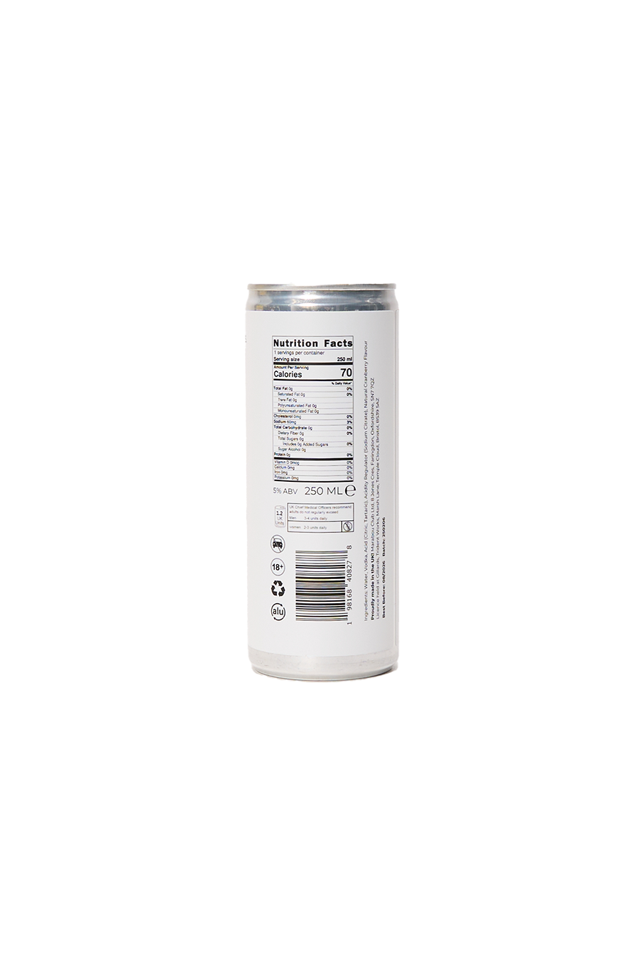Carbonated water, vodka, acid (citric/tartaric), sodium citrate, natural cranberry flavour