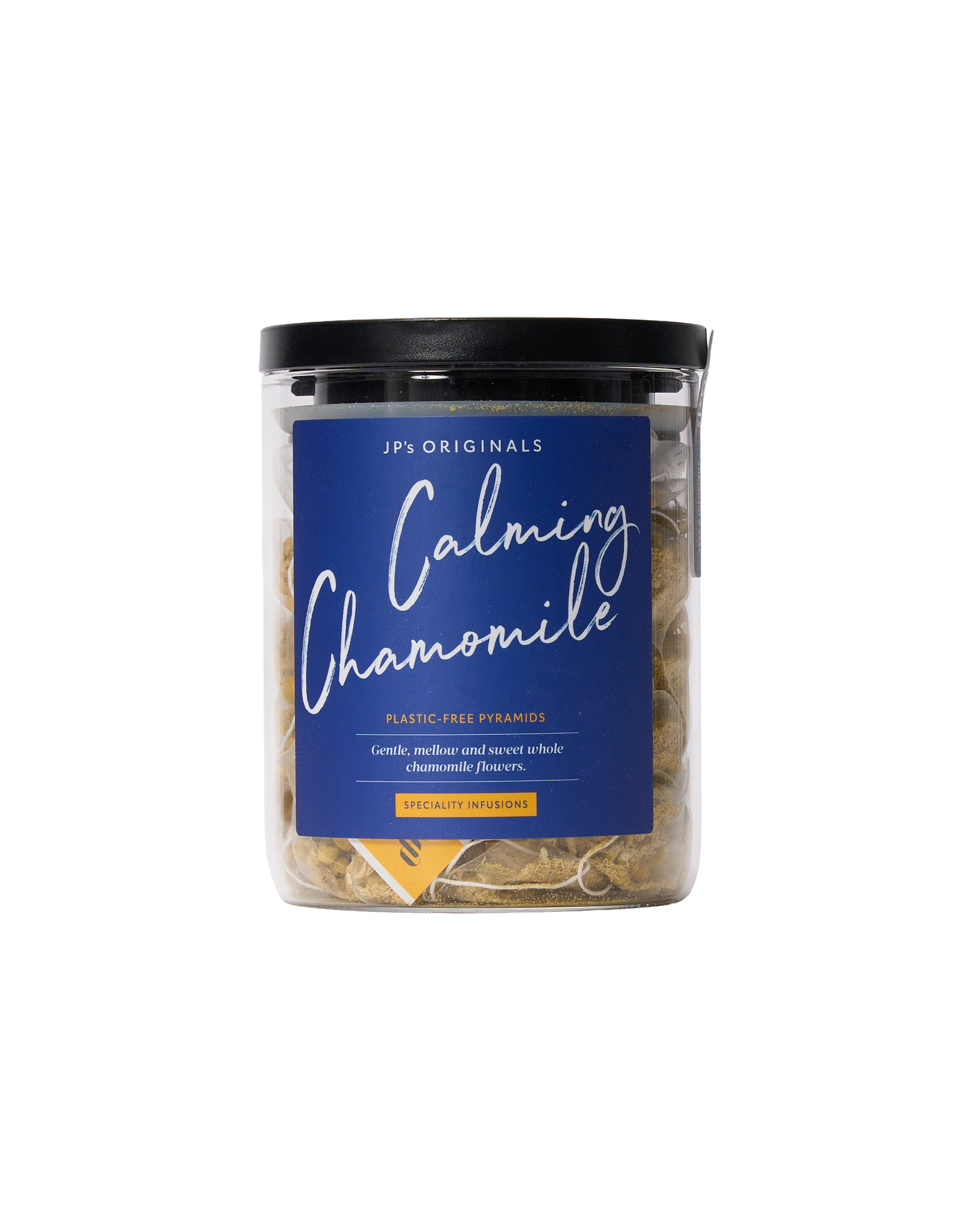 Made from 100% organic chamomile flowers, it's naturally calming and anti-inflammatory — the perfect blend to ease anxiety and support restful sleep. Steep at 100°C and infuse for 3–5 minutes. Each refillable jar contains 30 pyramid bags.