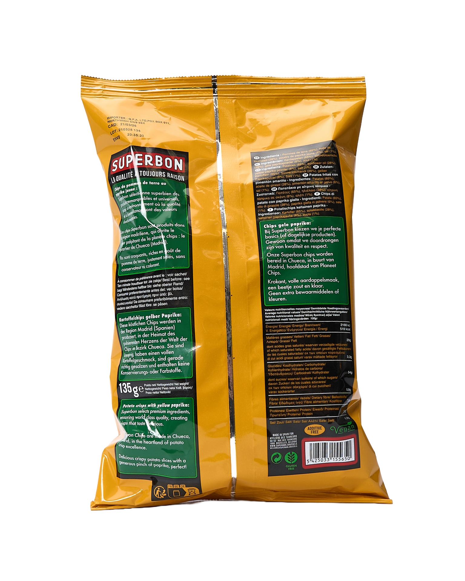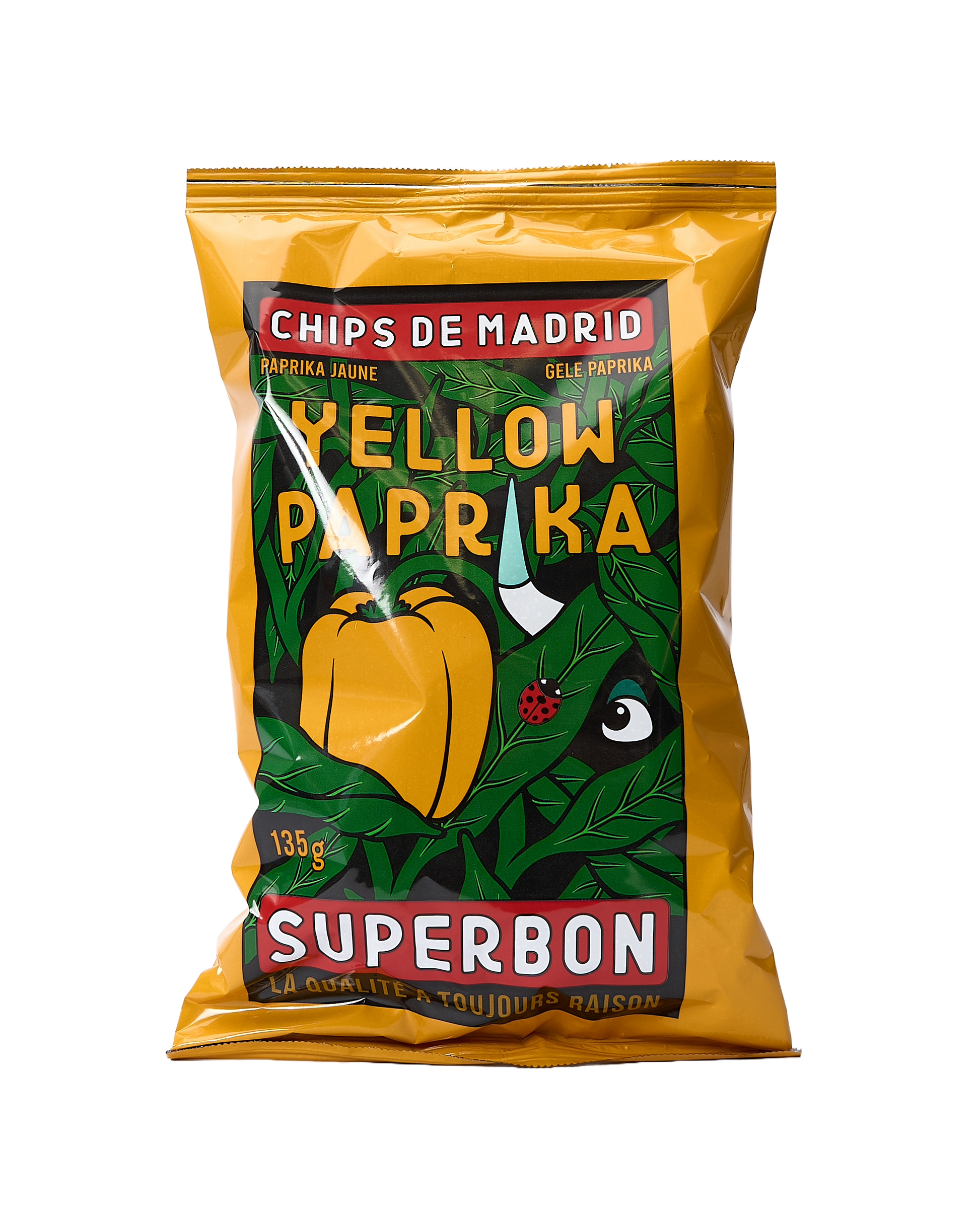 Superbon creates crispy potato crisps with a hit of yellow paprika for gentle smokiness, perfect for munching or dipping. Their recipes come from renowned Chef Philippe Emanuelli, who travels the world to source ingredients and refine each flavor. The striking packaging is designed by avant-garde artist Greg Ewing, creating works of art that happen to be crisp bags too.