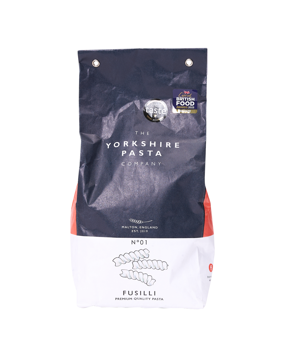 The Yorkshire Pasta Company uses locally milled wheat flour to create their delicious pasta. This fusilli is defined by its spindle shape that looks like a corkscrew. It has been made using the traditional bronze-drawn method, which aids in the pasta’s ability to hold sauce. Enjoy with bolognese.